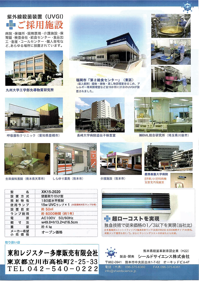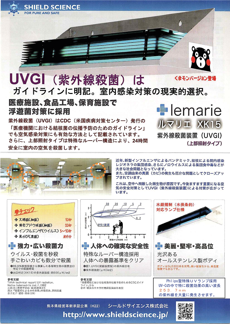 医療施設、食品工場、保育施設で浮遊菌対策に!「ルマリエXK15」紫外線殺菌装置